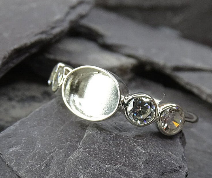 💍 Sterling Silver Oval Memorial Ring with 4 Cubic Zirconia