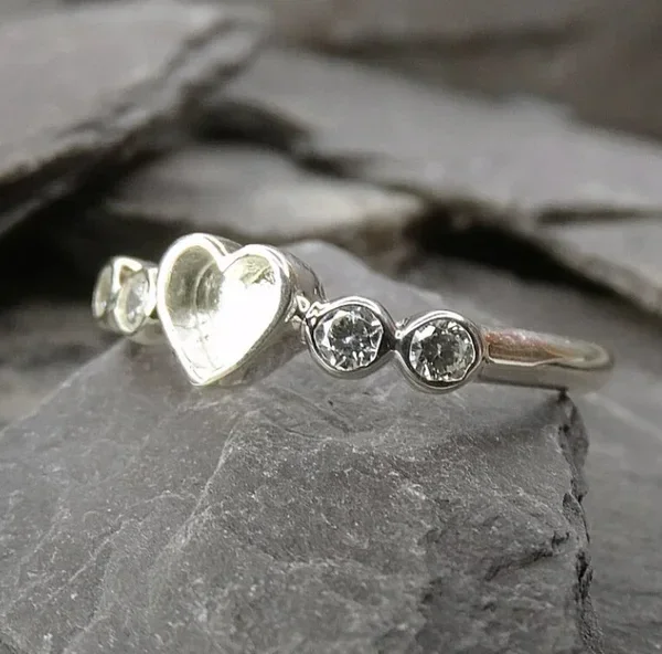 Sterling Silver Heart with cubic zirconia stones Memorial Ring