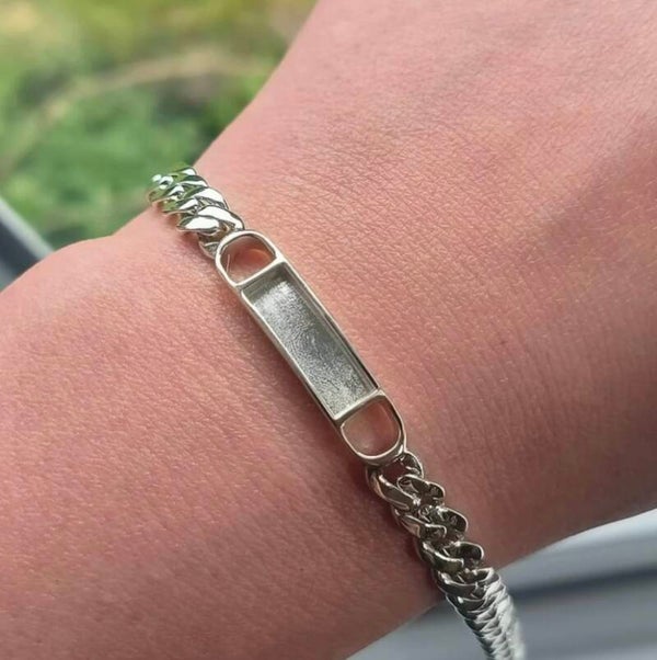 Celebrate connection, memory, and enduring style with this beautifully crafted bezel curb chain bracelet, made from resin and 925 sterling silver. Its substantial curb links offer a bold yet classic silhouette—perfect for everyday wear, commemorative gifting, or marking a meaningful bond.
