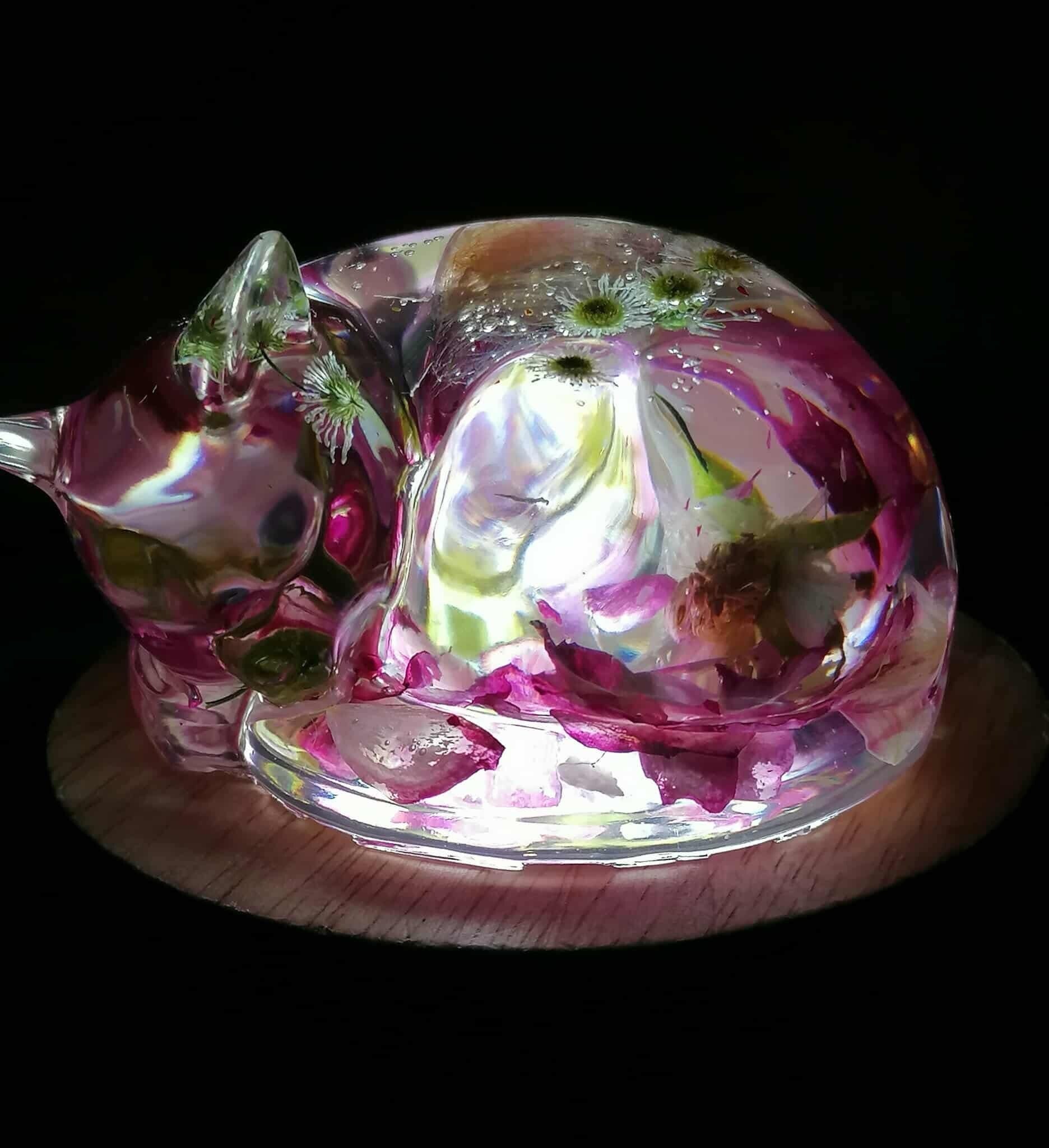 Lovingly made from clear resin, each cat can hold a tiny piece of your cat's fur or ashes, or even special flowers. With soft colours and a gentle shimmer, it’s made to feel warm and safe — like a quiet cuddle when they need it most.