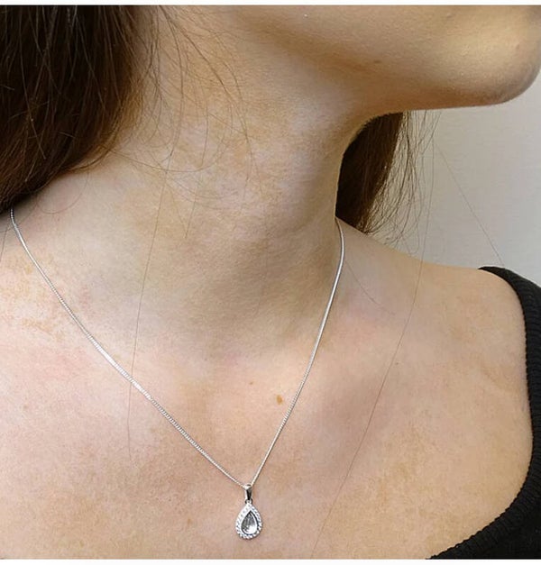 🤍 Sterling Silver Teardrop Memorial Pendant necklace with Cubic Zirconia