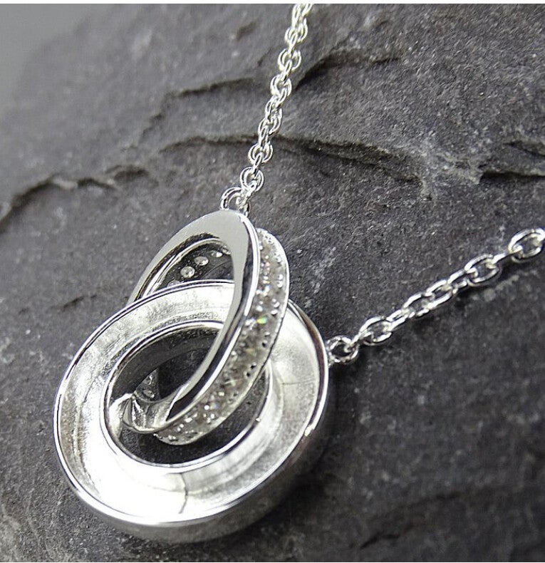 This elegant double disc pendant, crafted in 925 sterling silver, offers a layered tribute to love, memory, and connection. With two gently overlapping circles, it symbolises unity, continuity, and the intertwining of lives—ideal for honouring shared journeys or dual remembrance.