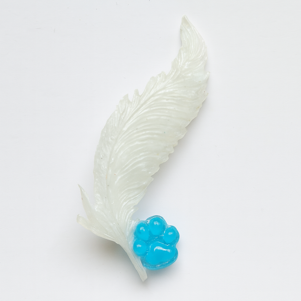 That’s why I created the Pet Edition of the Rosalind Brooch. Inspired by my mum Rosalind’s love and strength, the original brooch carries a feather and rose to honour human loss. The Pet Edition carries a pawprint beside the feather—a quiet tribute to those who padded beside us, loved us without words, and left pawprints on our hearts. It lets others know you are grieving.